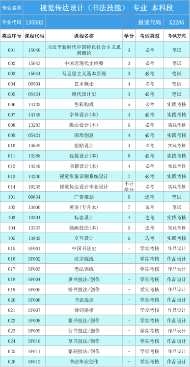 BK2205 | 视觉传达设计(书法技能) | 专升本 | 主要招收相同或相近专业专科毕业生